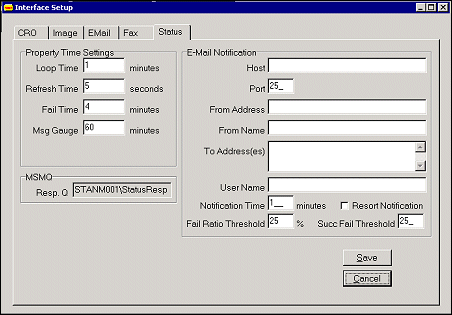 Note: This can be used to alert all systems in case ORS, a property, or a thread goes down. In such a fail situation an email notification could be sent to the addressees listed in the fields below.